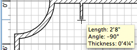 Draw straight, round or sloping walls with precise dimensions using the mouse or the keyboard.