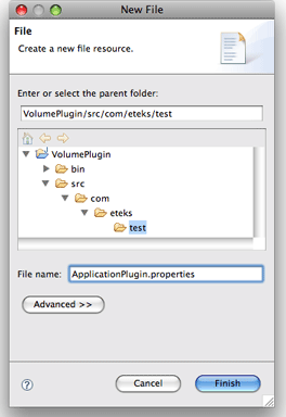 An ApplicationPlugin.properties file describes the plug-in name, its class, the Sweet Home 3D and Java minimum versions under which it is supported, and legal stuff. Choose File > New > File from Eclipse menu, enter the file name ApplicationPlugin.properties and click on Finish, as shown in figure 5.