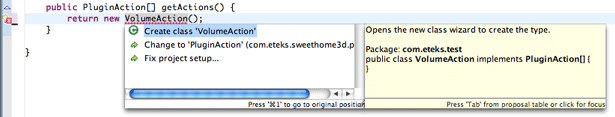 and choose Edition > Quick Fix out of Eclipse menu to create the missing class VolumeAction, as shown in figure 4.